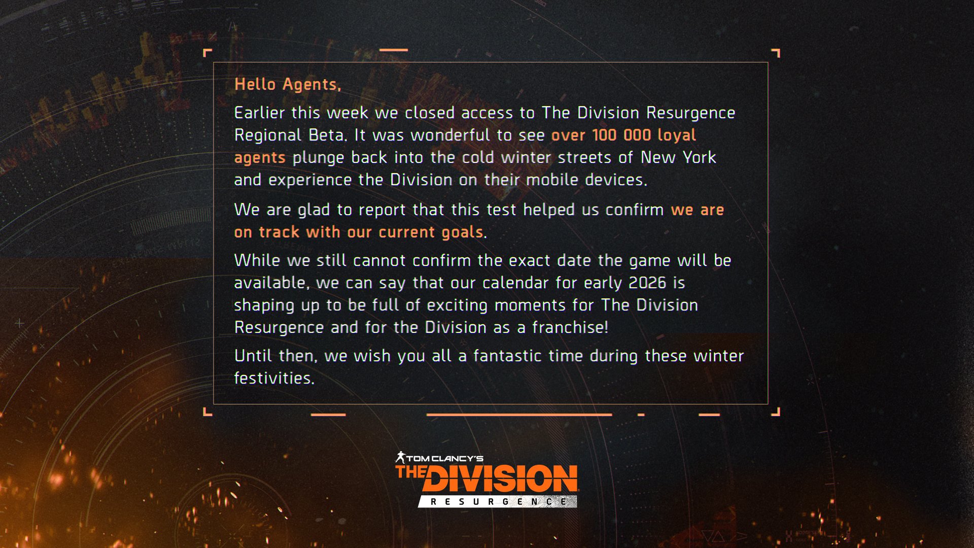 Al momento non possono ancora confermare la data di rilascio, ma sembra che il calendario di inizio 2026 preveda possibili novità per Resurgence e il franchise di The Division in se.