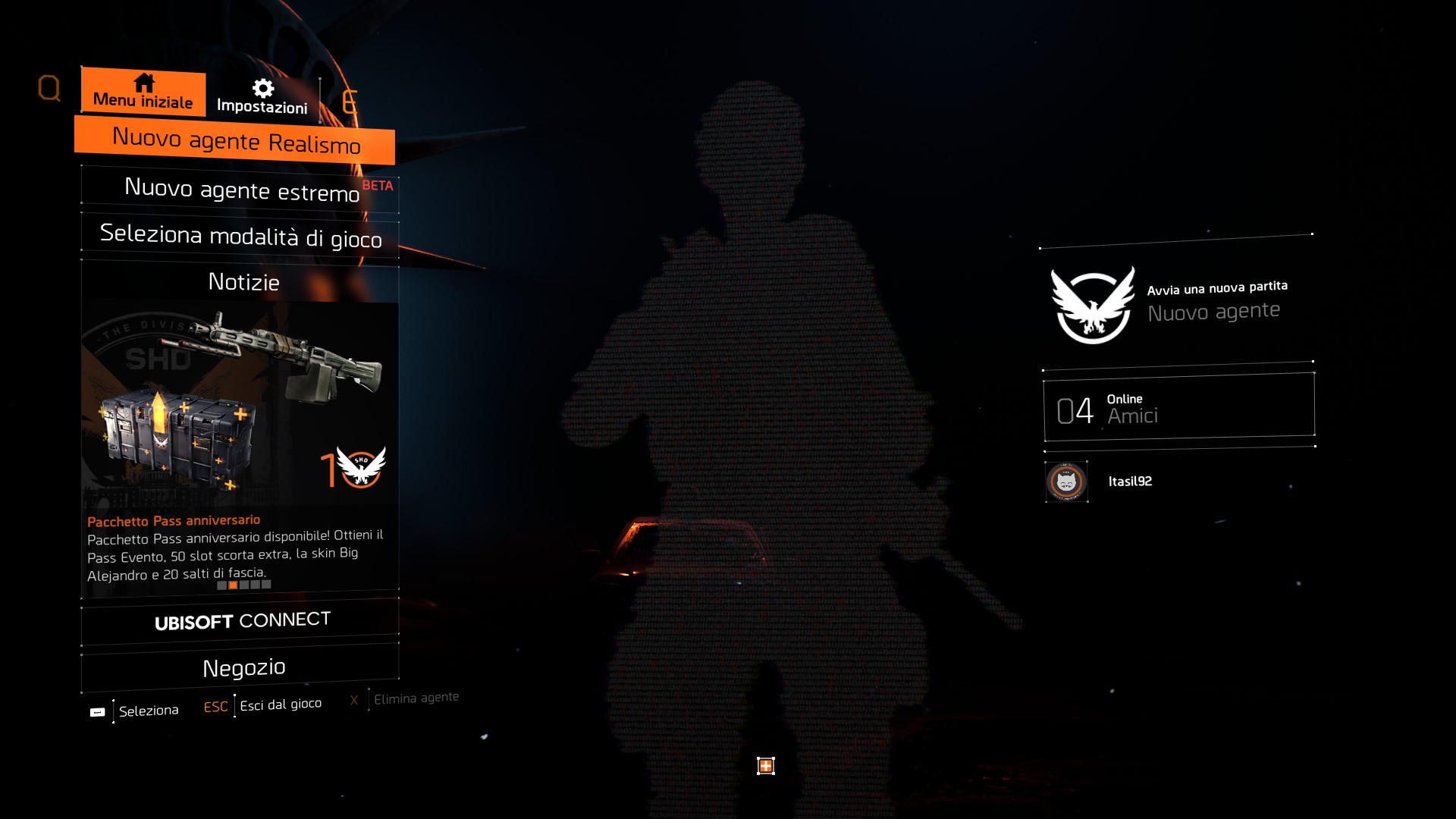 Cliccando su Realismo si apre il menu iniziale simile a quello della campagna ordinaria, ed è necessario creare un nuovo agente appositamente per giocare questa modalità.
