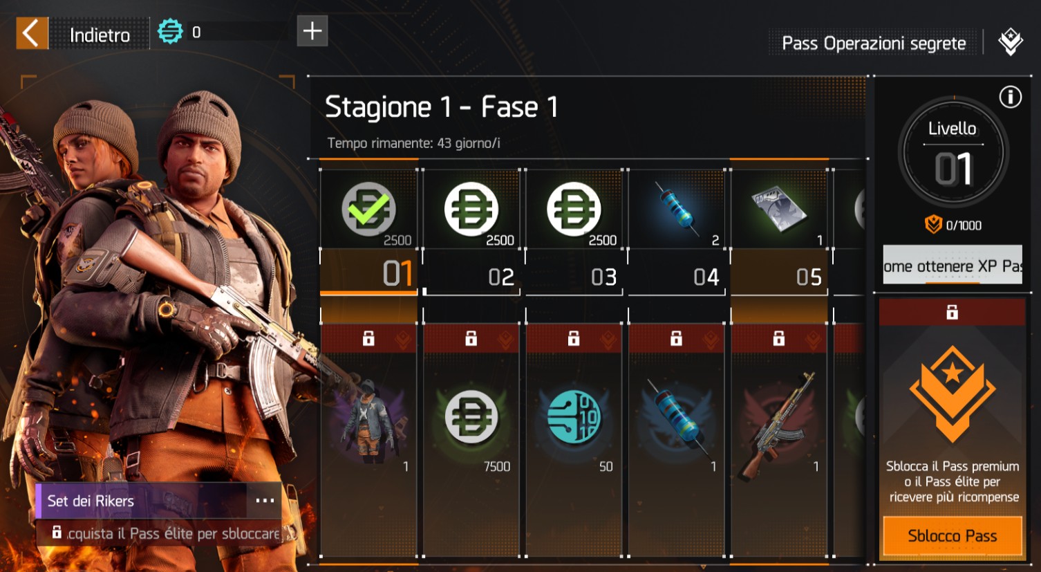 I progressi del Pass Operazioni segrete, le ricompense e l’attivazione premium sono associati al personaggio in uso.