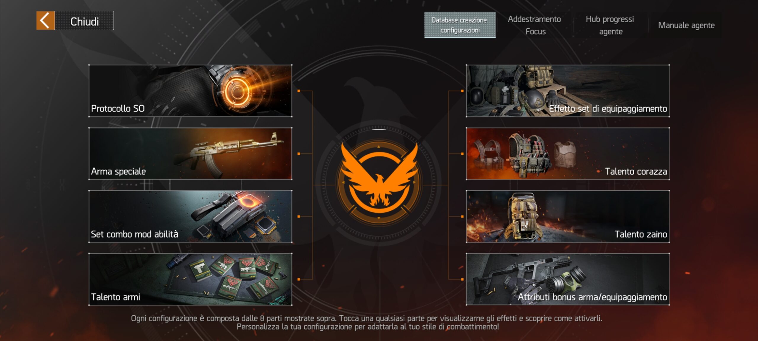 Nel Database creazione configurazioni (menù Carriera Agente) è presente la lista completa di tutti i Set Equipaggiamento presenti in gioco, e ovviamente viene rivelato anche su quali oggetti può uscire ogni set, e gli attributi sbloccabili equipaggiando da 2 a 4 pezzi dello stesso Set.