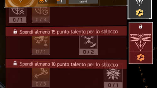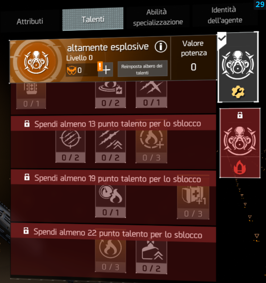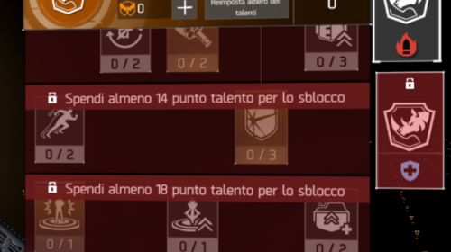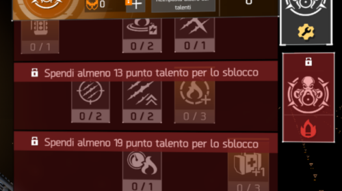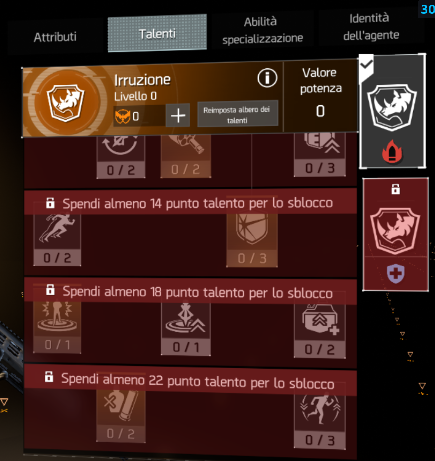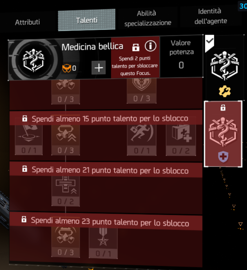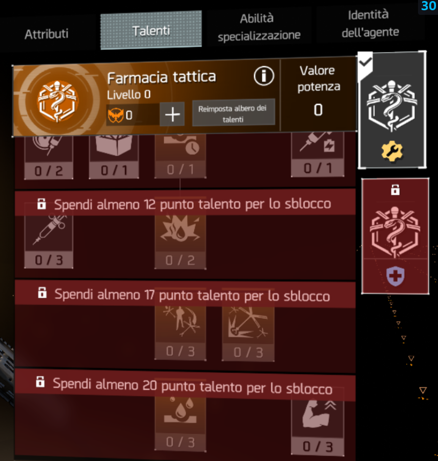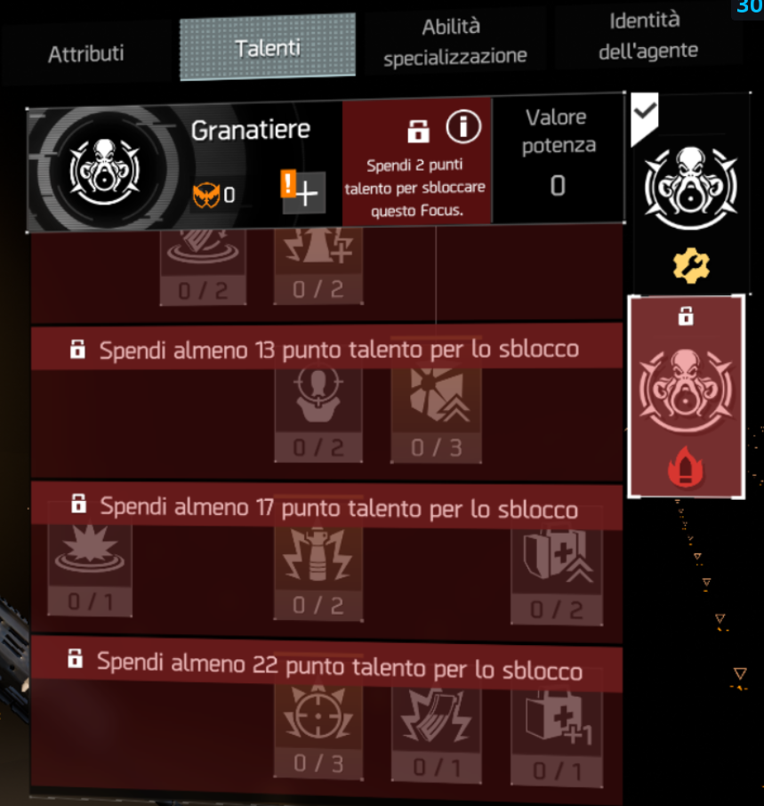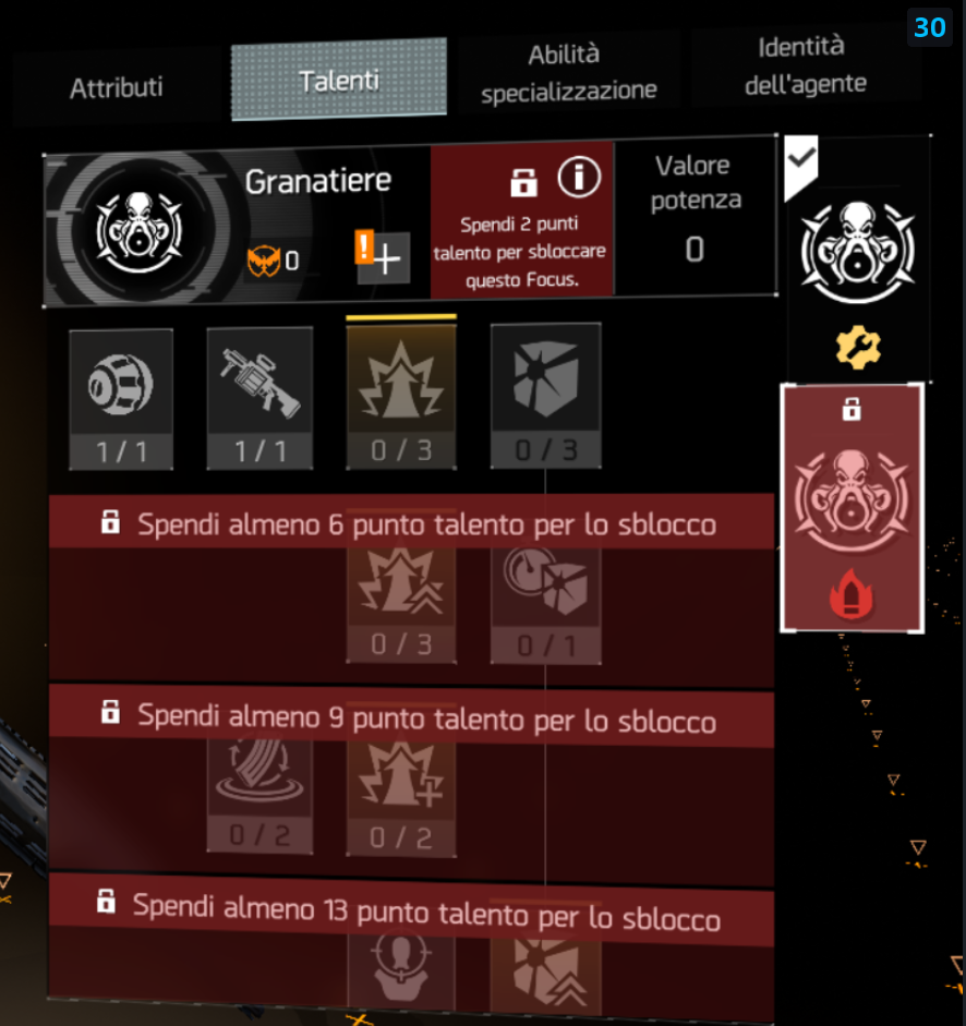 - 30 punti talento possono essere acquisiti aumentando il livello specializzazione.
