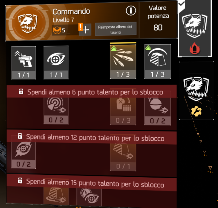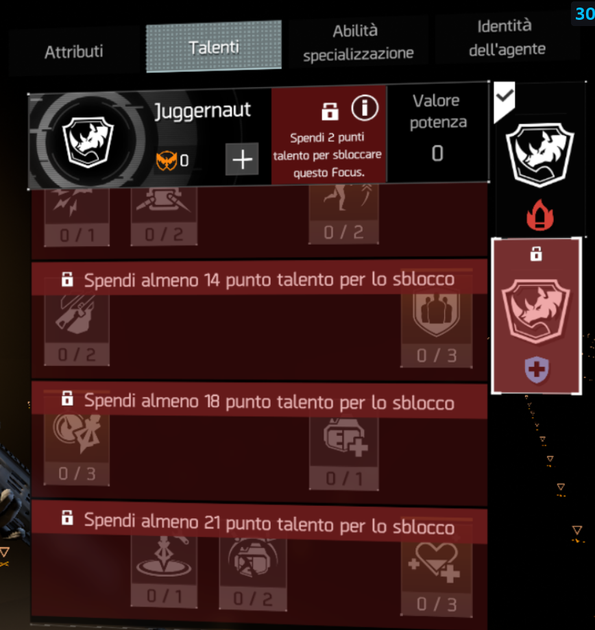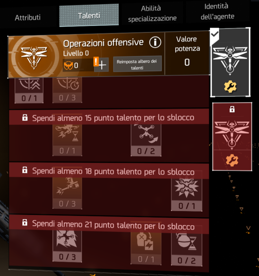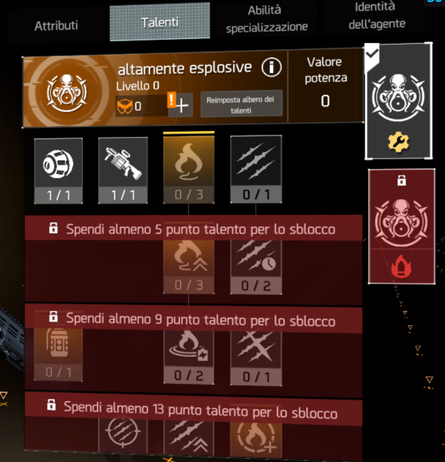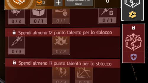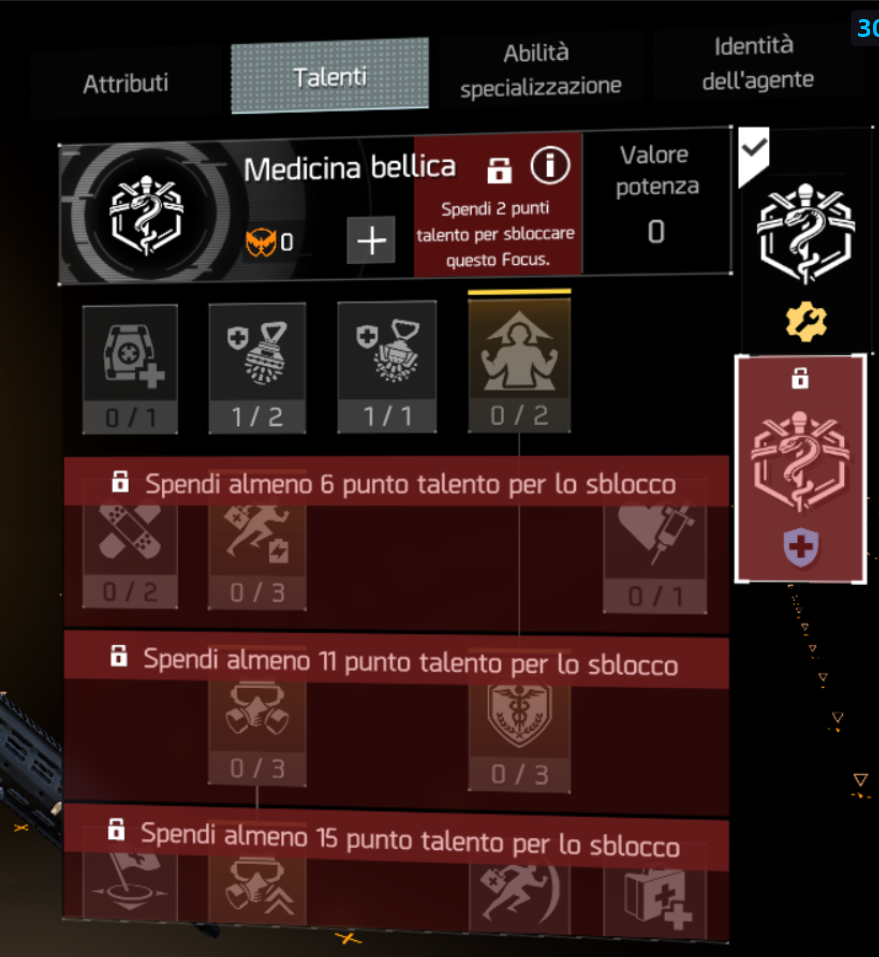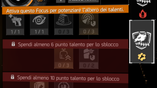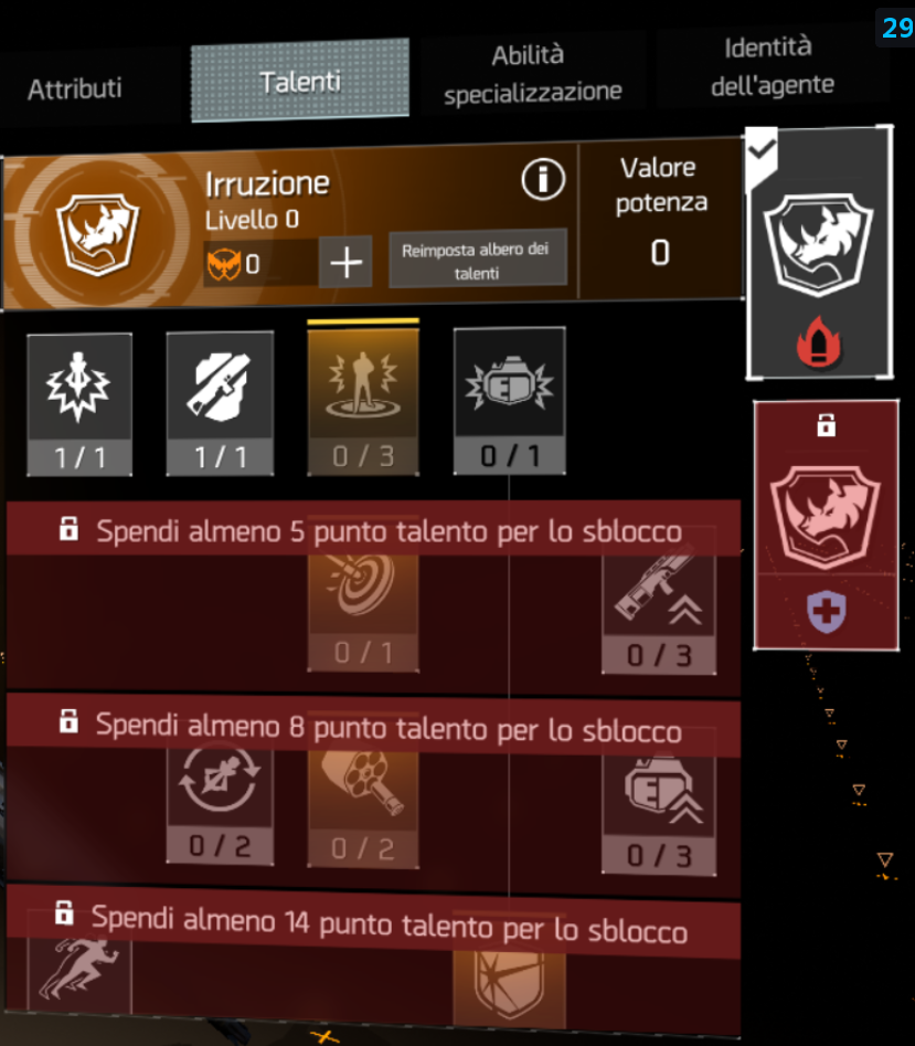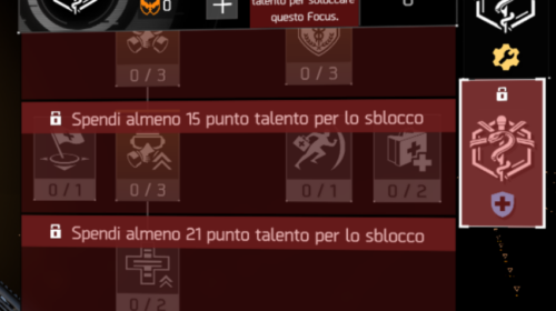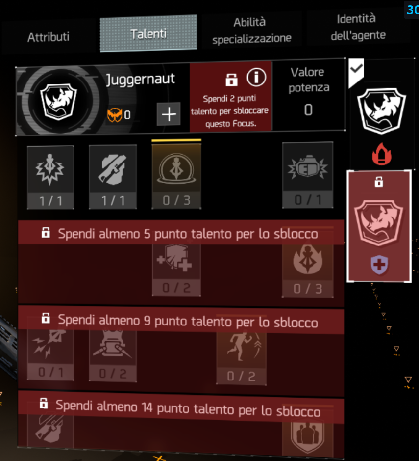 - 30 punti talento possono essere acquisiti aumentando il livello specializzazione.