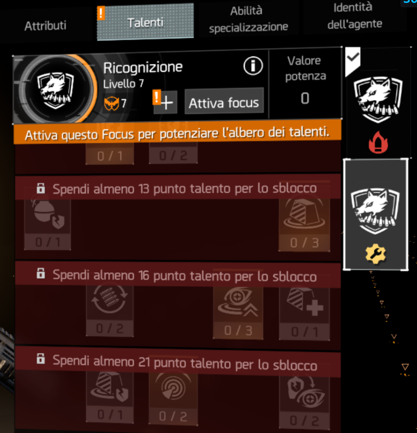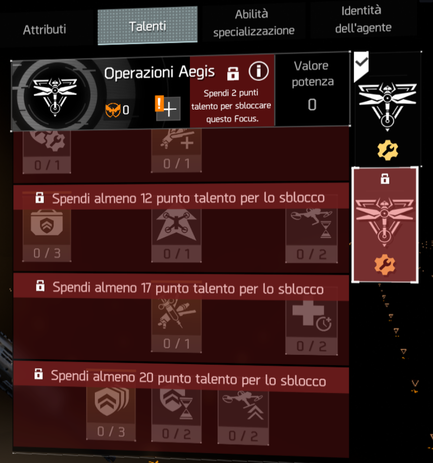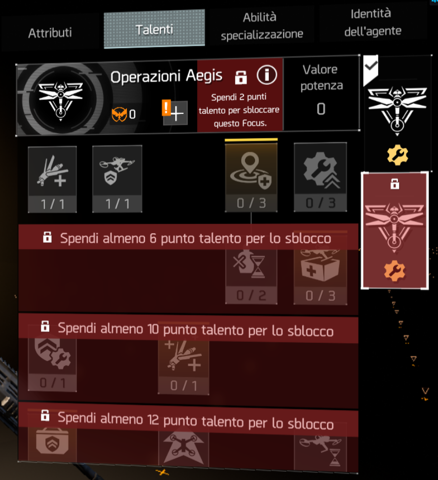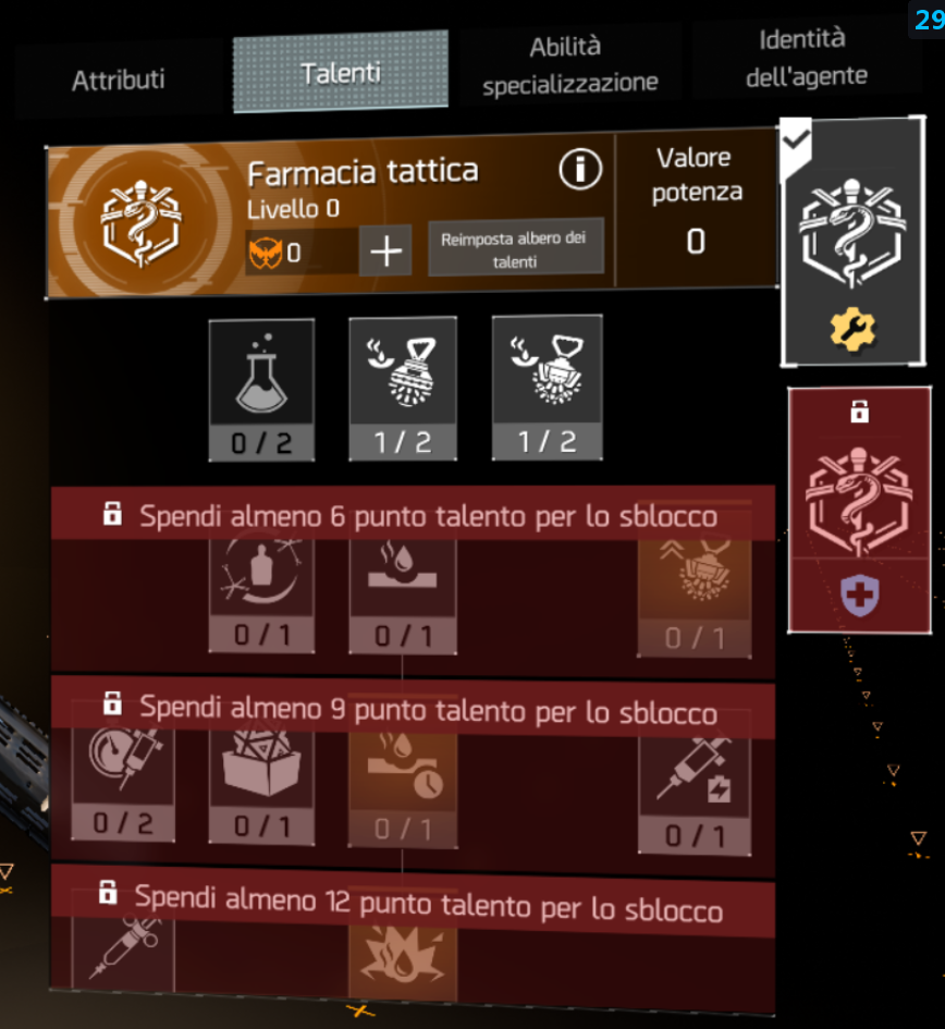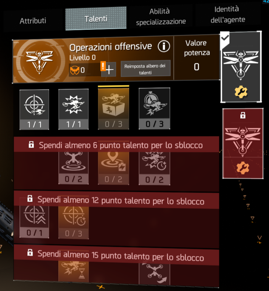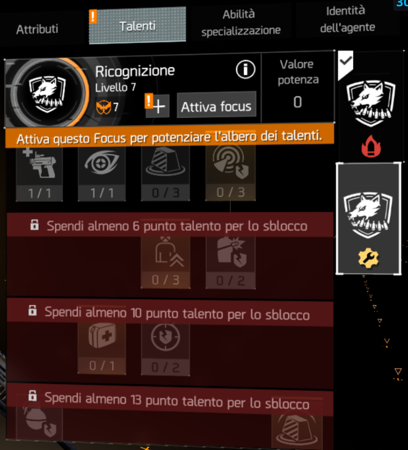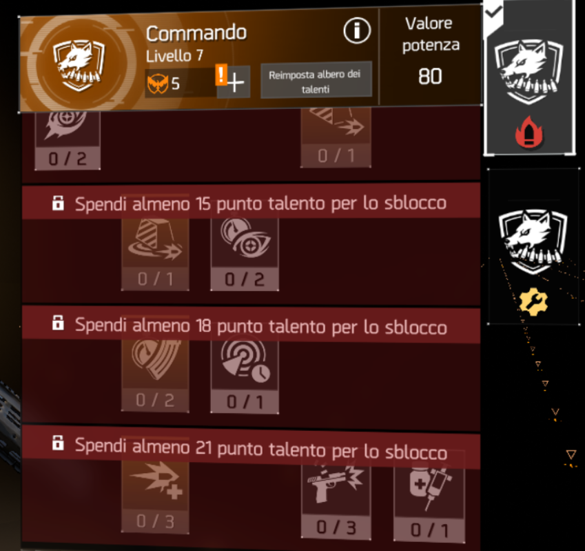 - 30 punti talento possono essere acquisiti aumentando il livello specializzazione.