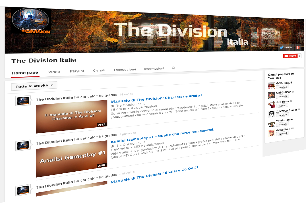 E’ con grande piacere che annuncio l’apertura, su YouTube, di un canale totalmente in italiano dedicato al nostro gioco preferito. Anche qui potrete trovare informazioni e video di approfondimento che vi spiegheranno la struttura di gioco e le varie sfaccettature.